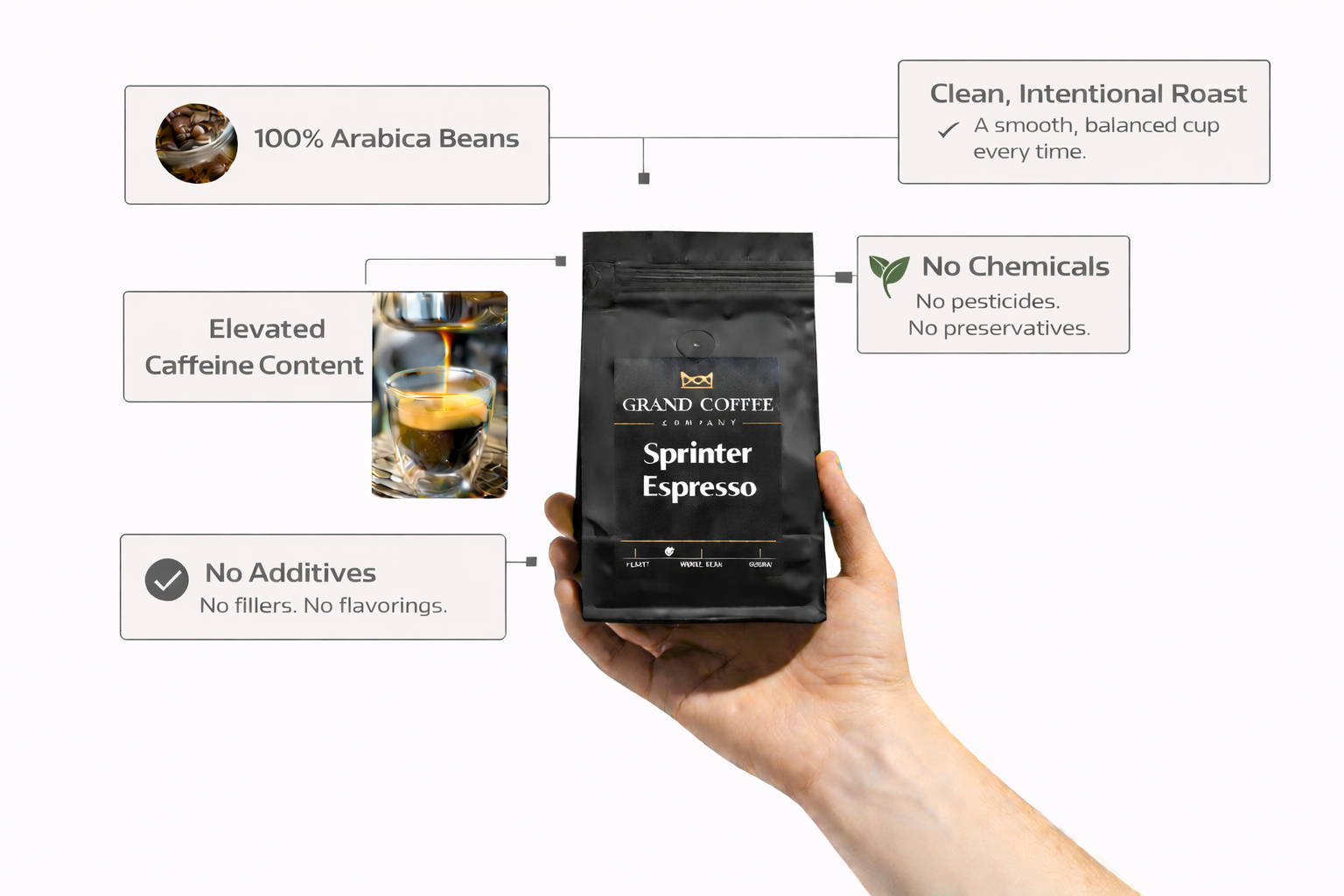 We created our coffee with a single focus. A clean, reliable cup that carries you through the day without unnecessary additives or chemicals.